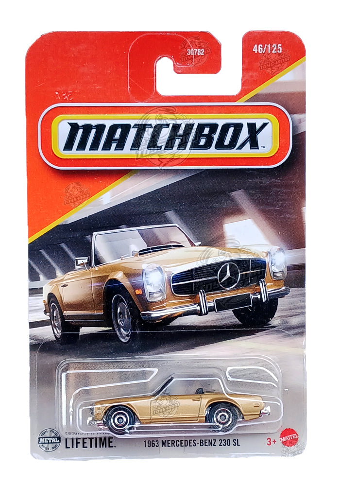EXCLUSIVES Matchbox 1963 Mercedes-Benz 230 SL - Brown - 2024 Card (With Protector Case)