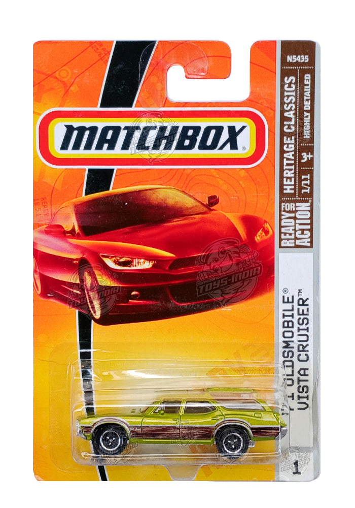 EXCLUSIVES Matchbox '71 Oldsmobile Vista Cruiser - Green / Brown - 2008 Card (With Protector Case)
