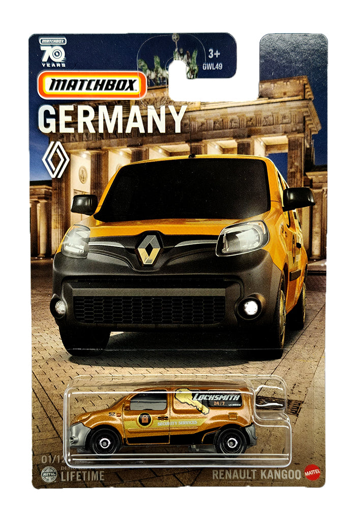 EXCLUSIVES Matchbox Germany Renault Kangoo - Golden - 2023 Card (With Protector Case)