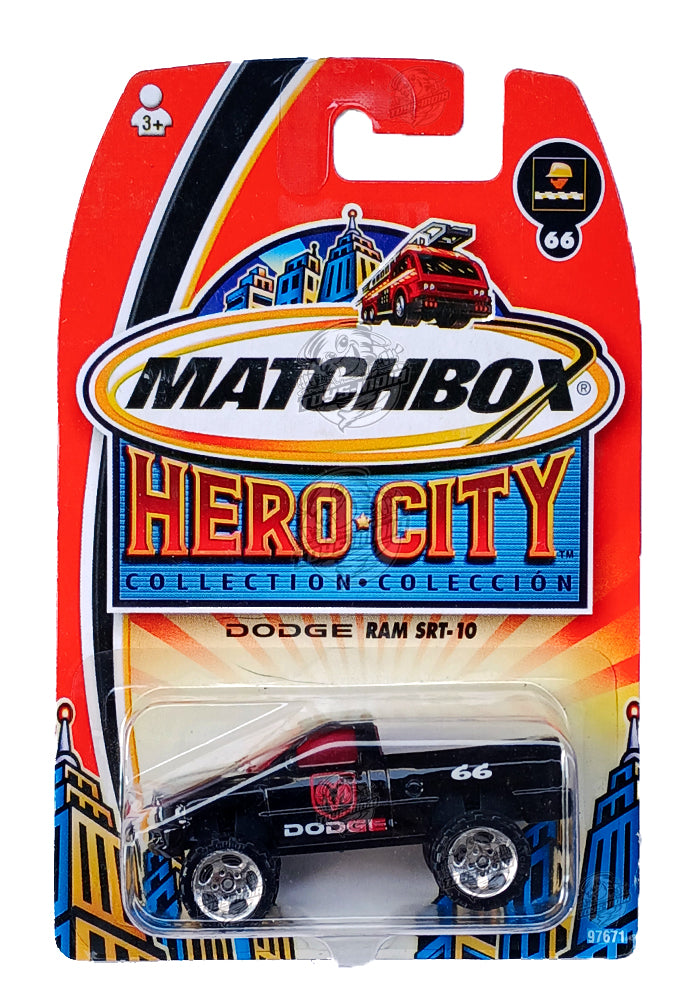 EXCLUSIVES Matchbox HERO CITY Collection Dodge Ram SRT-10 - Grey / Black - 2003 Card (With Protector Case)