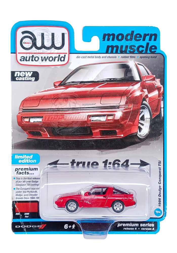 EXCLUSIVES Auto World Limited Edition Modern Muscle 1986 Dodge Conquest TSi - Red (Creased Card / Car in Excellent Condition)