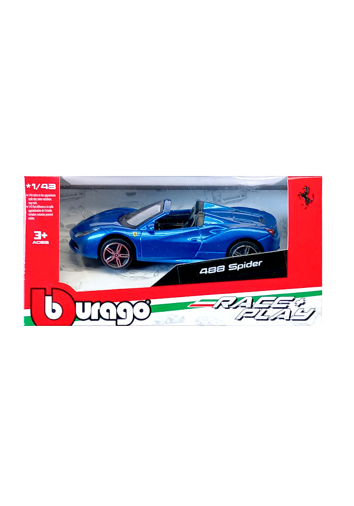 EXCLUSIVES Burago Ferrari Race & Play Ferrari 488 Spider - Blue (Scale 1:43)