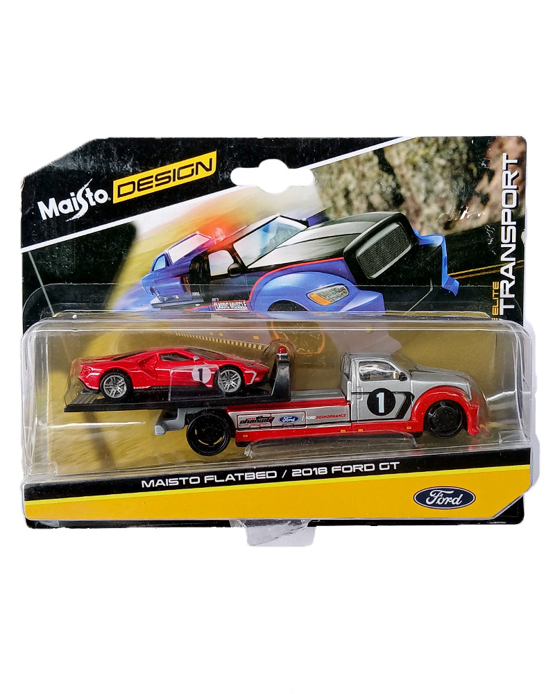 Maisto Design Elite Transport Maisto Flatbed & 2018 Ford GT - Red / Silver (1:64 Scale)