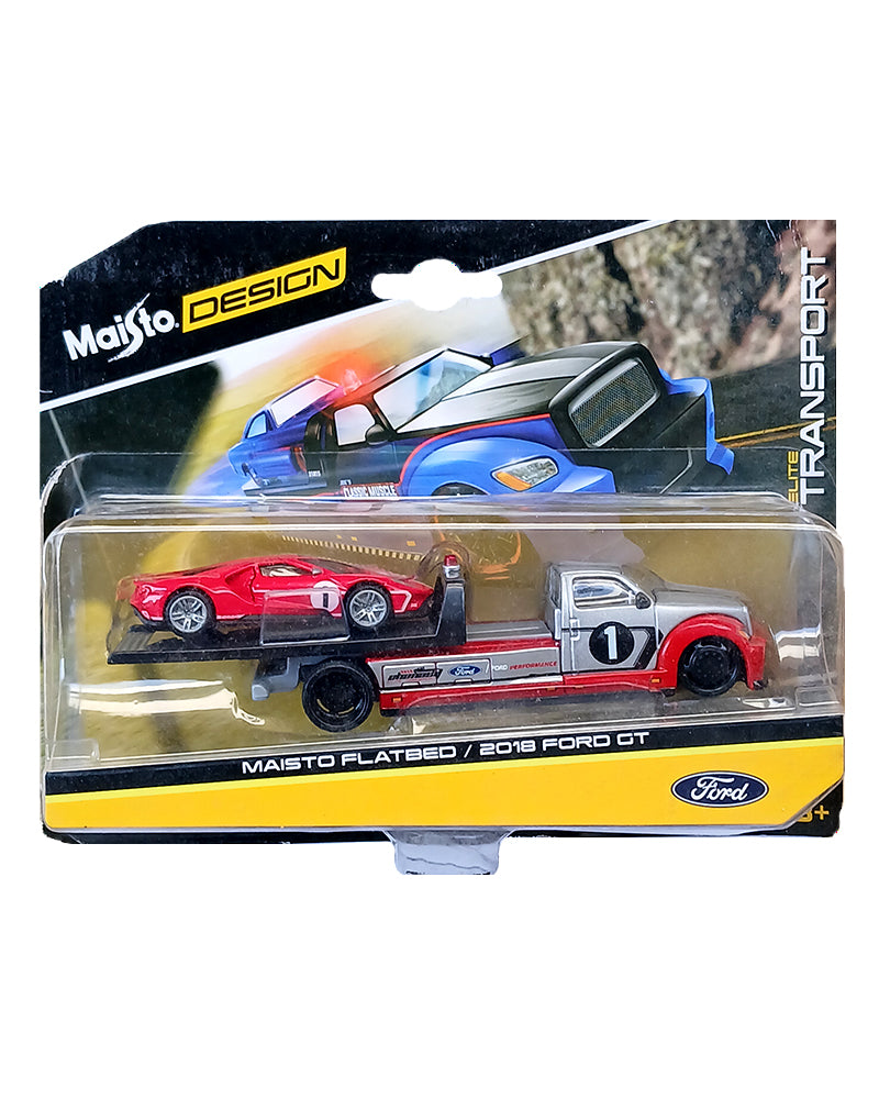 Maisto Design Elite Transport Maisto Flatbed & 2018 Ford GT - Red / Silver (Slight Card Damage) (1:64 Scale)