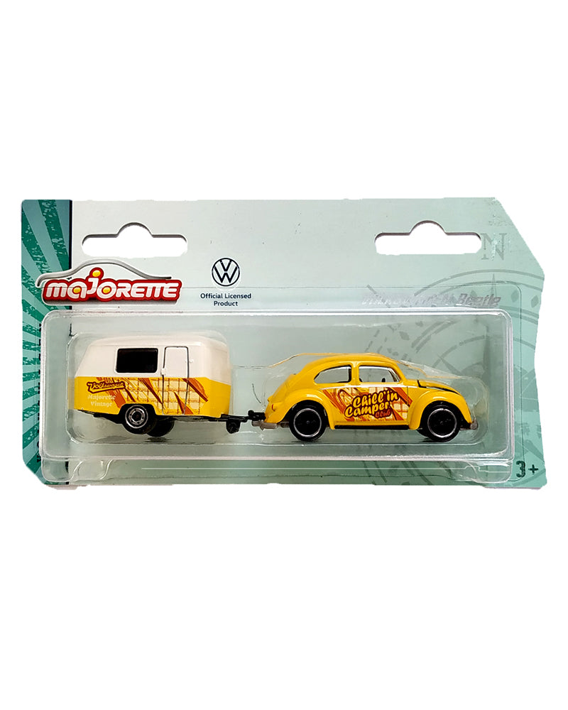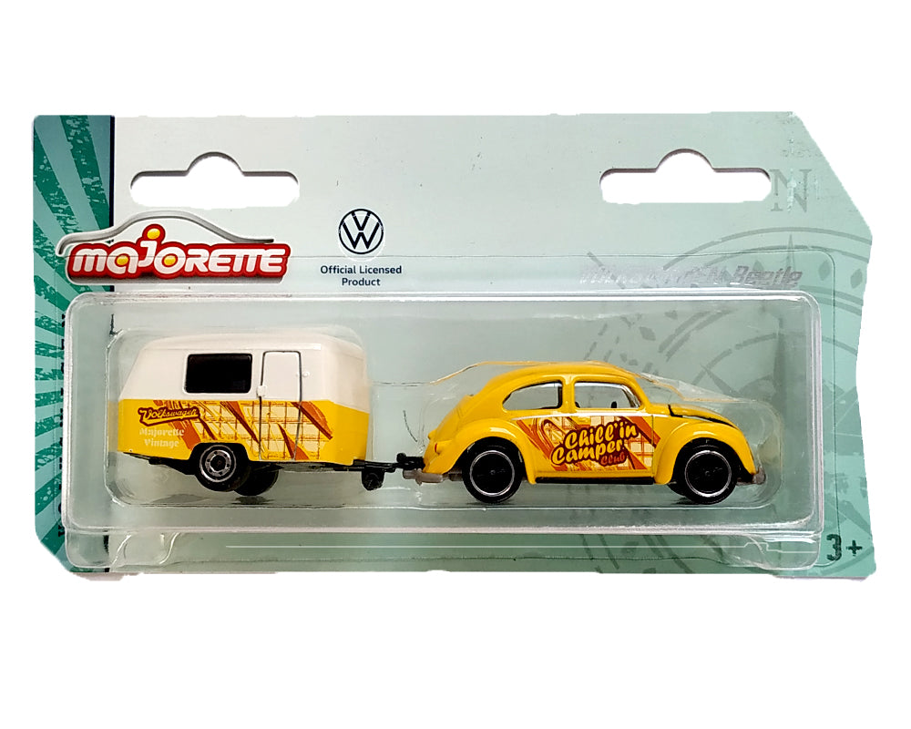 Majorette Volkswagen Special Volkswagen Beetle with Camper - Yellow / White - 2022 Card