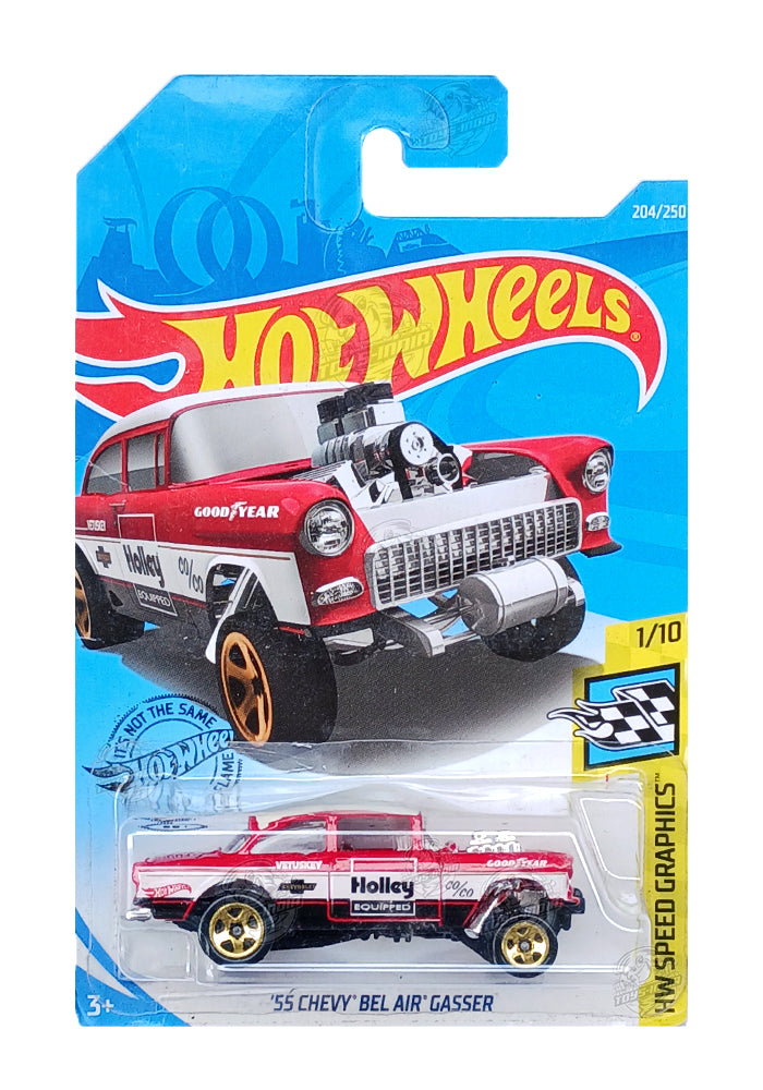 PRE OWNED Hot Wheels '55 Chevy Bel Air Gasser - Red / White / Black - 2019 Card