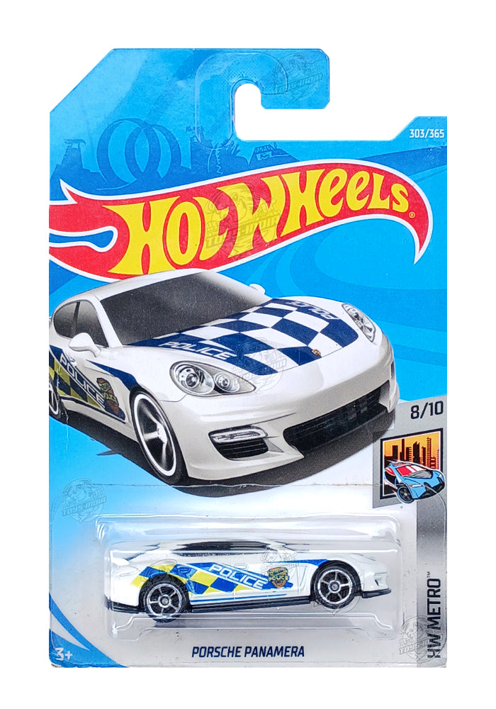 PRE Owned Hot Wheels Porsche Panamera - White / Blue - 2018 Card