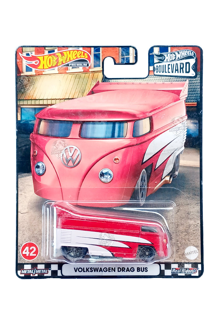 EXCLUSIVES Hot Wheels Premium Boulevard Volkswagen Drag Bus - Red / White - 2020 Card