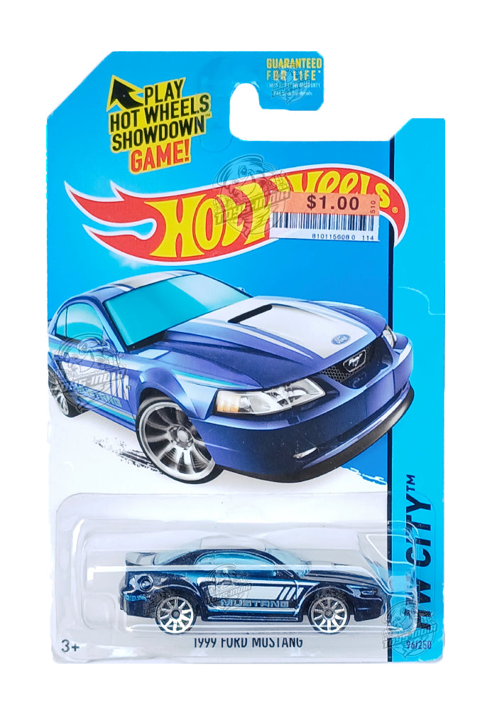 EXCLUSIVES Hot Wheels 1999 Ford Mustang - Blue / White - 2013 Card (With Protector Case)
