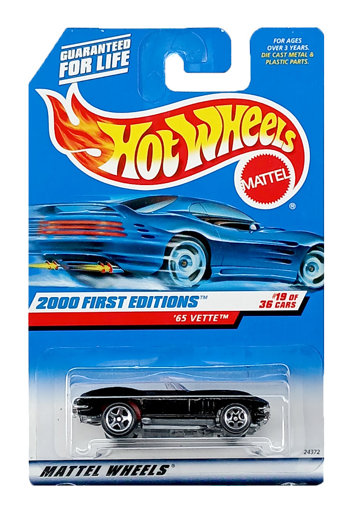 EXCLUSIVES Hot Wheels 2000 First Editions '65 Vette - Black - 1999 Card (With Protector Case)