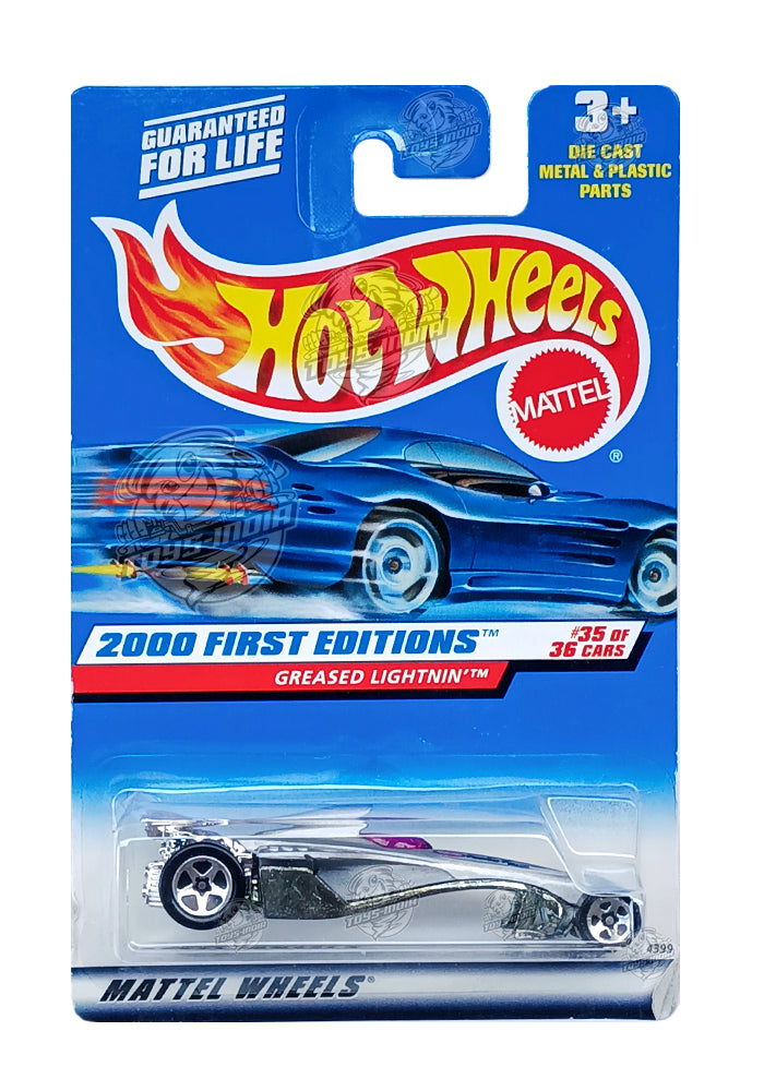 EXCLUSIVES Hot Wheels 2000 First Editions Greased Lightnin' - Silver - 1998 Card(With Protector Case)