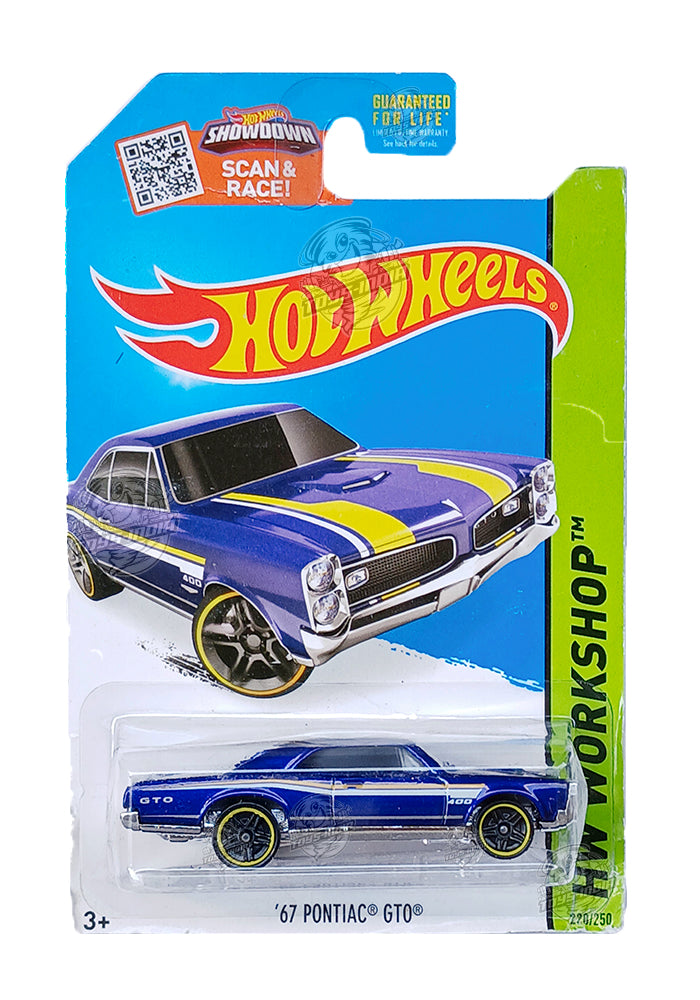 EXCLUSIVES Hot Wheels '67 Pontiac GTO - Blue / Yellow - 2013 Card (With Protector Case)