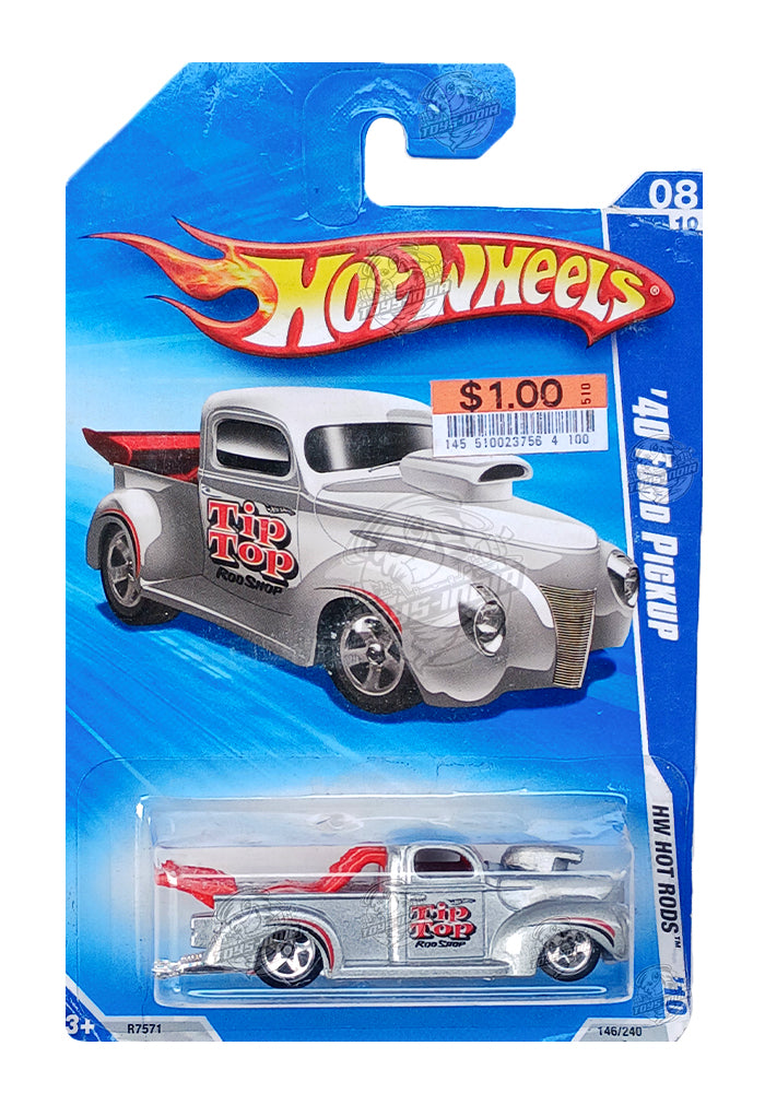 EXCLUSIVES Hot Wheels '40 Ford Pickup - Silver / Red - 2009 Card (With Protector Case)