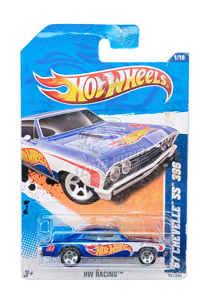 EXCLUSIVES Hot Wheels '67 Chevelle SS 396 - Blue / White - 2010 Card (With Protector Case)