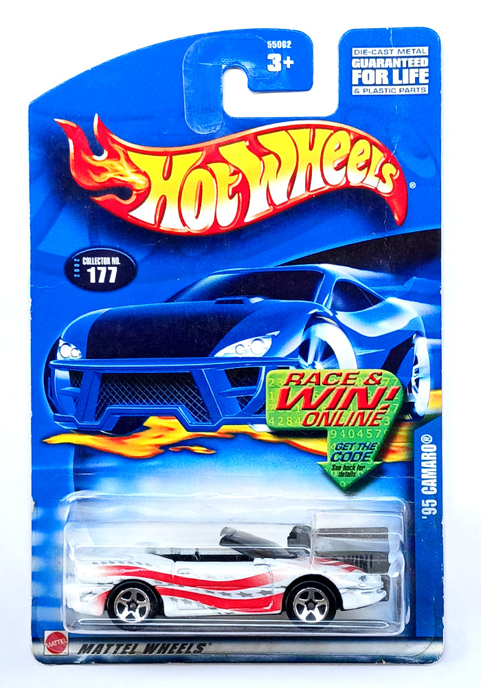 EXCLUSIVES Hot Wheels '95 Camaro - White / Red - 2001 Card (With Protector Case)