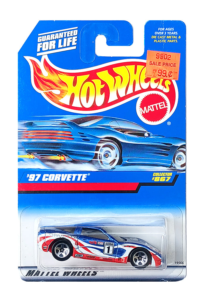 EXCLUSIVES Hot Wheels '97 Corvette - Blue / Red - 1997 Card (With Protector Case)