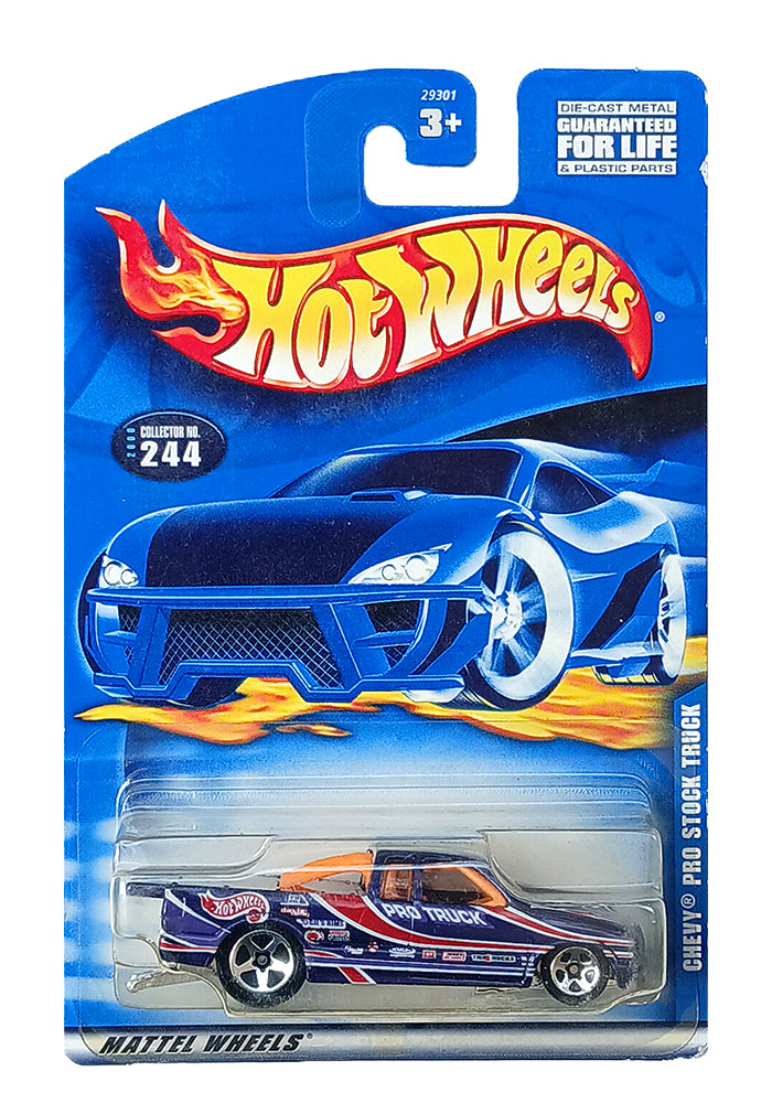 EXCLUSIVES Hot Wheels Chevy Pro Stock Truck - Blue / Red - 2000 Card (With Protector Case)