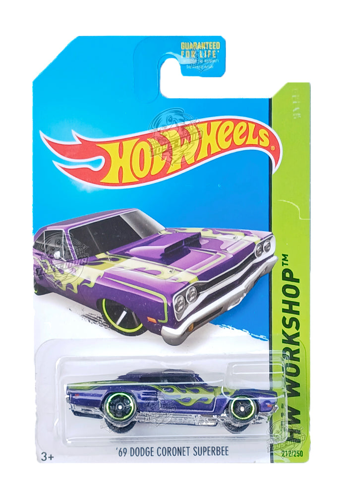 EXCLUSIVES Hot Wheels '69 Dodge Coronet Superbee - Purple / Green - 2013 Card (With Protector Case)