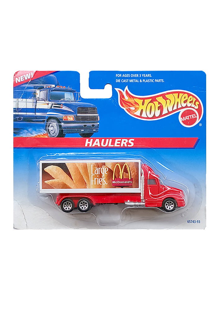 EXCLUSIVES Hot Wheels Haulers Mc Donalds French Fries Truck - Red - 1997 Card (Creased Card / Car in Excellent Condition)