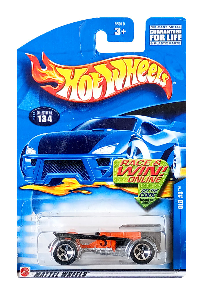 EXCLUSIVES Hot Wheels Old #3 - Orange / Black - 2001 Card (With Protector Case)