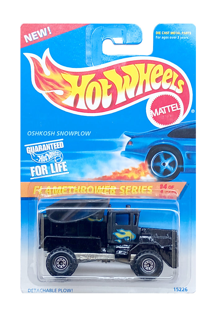 EXCLUSIVES Hot Wheels OSHKOSH Snowplow - Black - 1995 Card (With Protector Case)