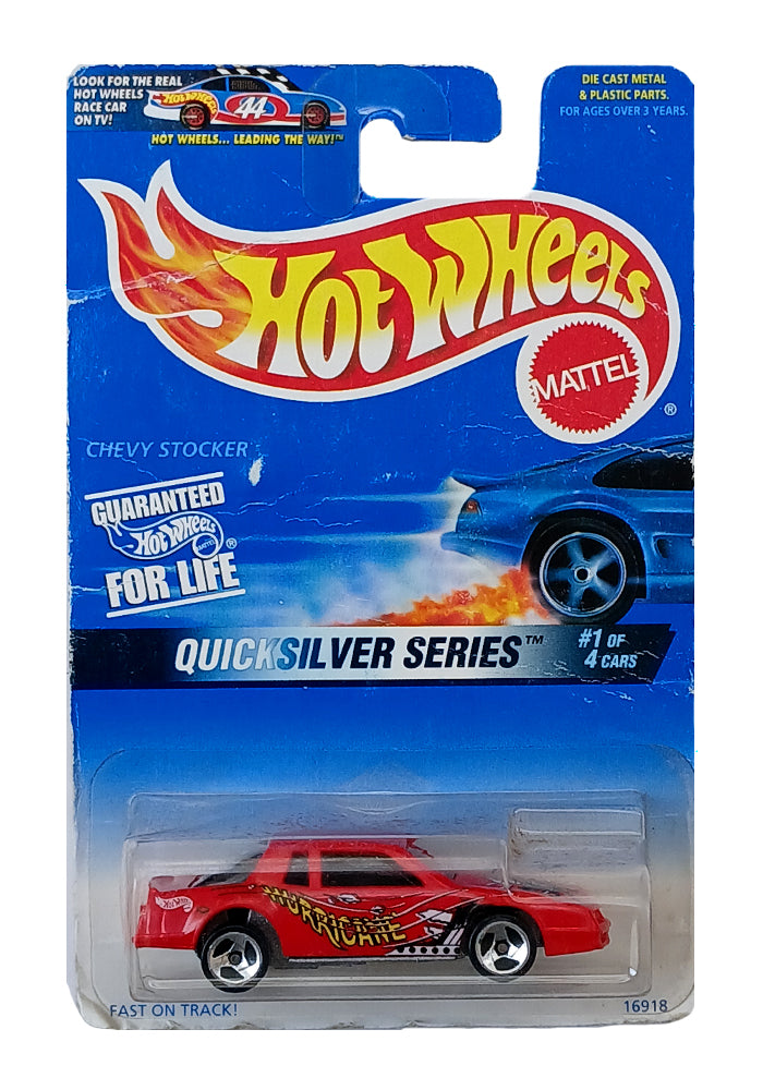 EXCLUSIVES Hot Wheels Quick Silver Series Chevy Stocker - Red - 1996 Card (With Protector Case)