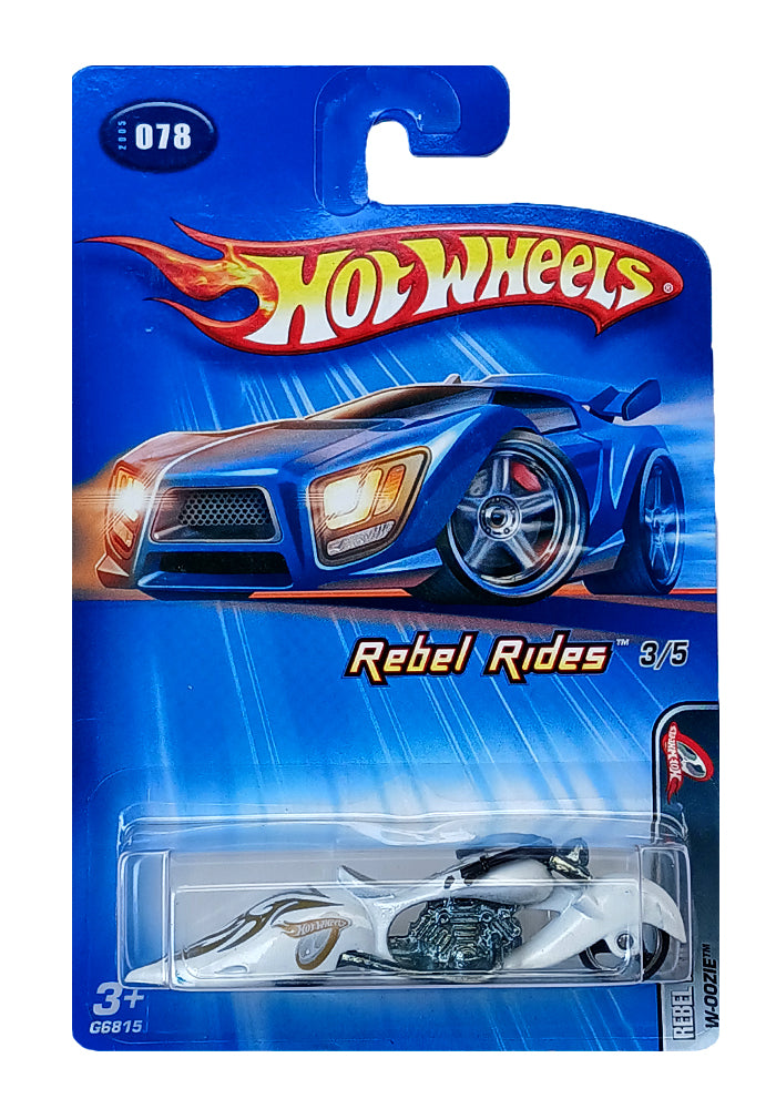 EXCLUSIVES Hot Wheels Rebel Rides W-Oozie - White / Silver - 2004 Card (With Protector Case)