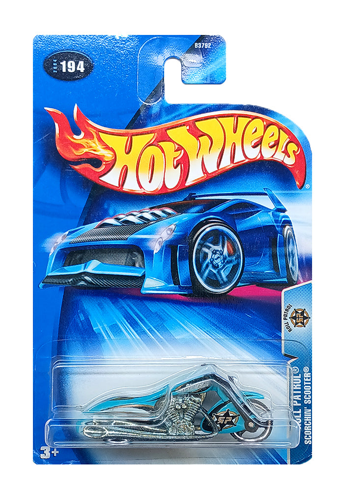 EXCLUSIVES Hot Wheels Roll Patrol Scorchin' Scooter - Green / Silver - 2003 Card (With Protector Case)