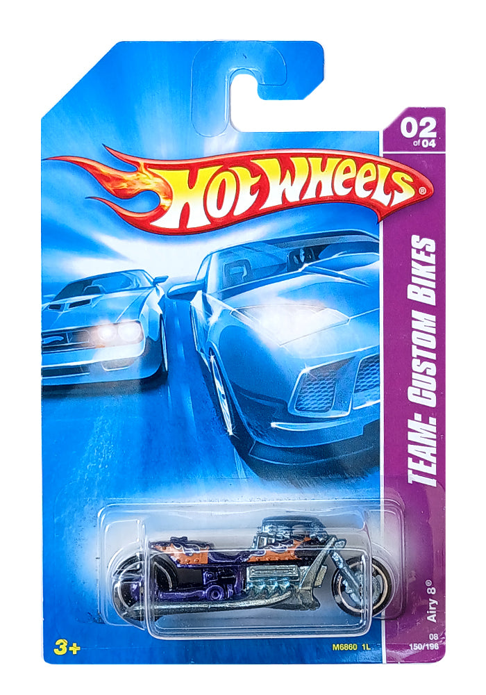 EXCLUSIVES Hot Wheels Team Custom Bikes Airy 8 - Purple / Silver - 2007 Card (With Protector Case)
