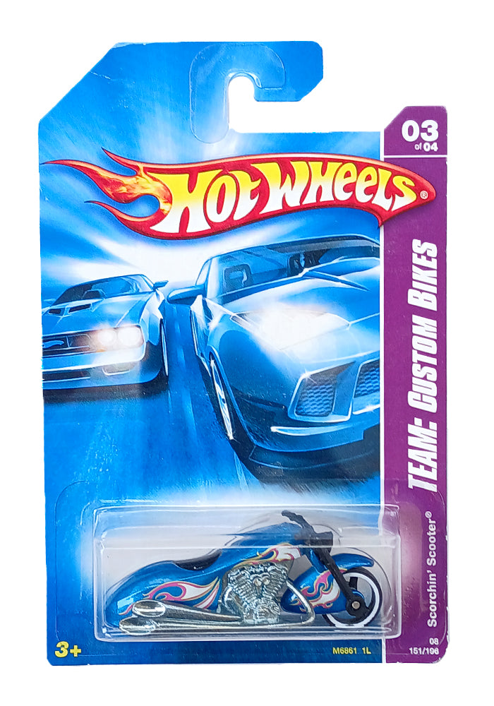 EXCLUSIVES Hot Wheels Team Custom Bikes Scorchin' Scooter - Blue / Silver - 2007 Card (With Protector Case)