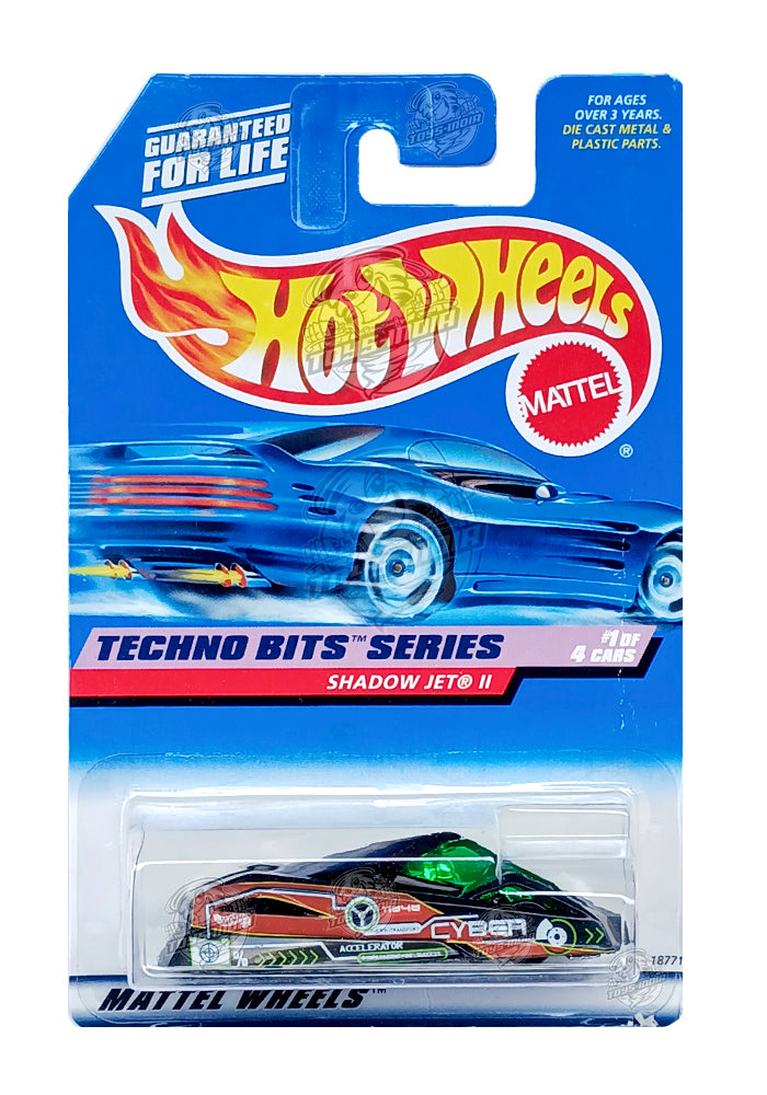 EXCLUSIVES Hot Wheels Techno Bits Series Shadow Jet II - Black / Brown - 1997 Card (Creased Card / Car in Excellent Condition) (With Protector Case)