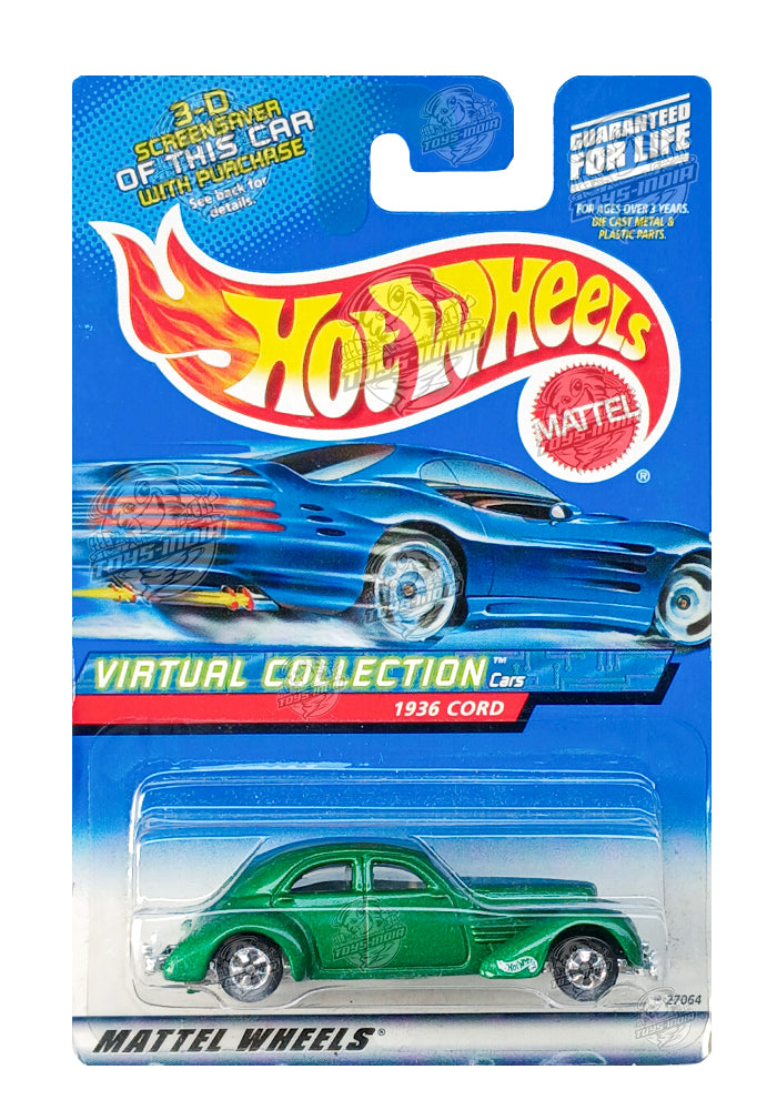EXCLUSIVES Hot Wheels Virtual Collection Cars 1936 Cord - Green - 1999 Card (With Protector Case)
