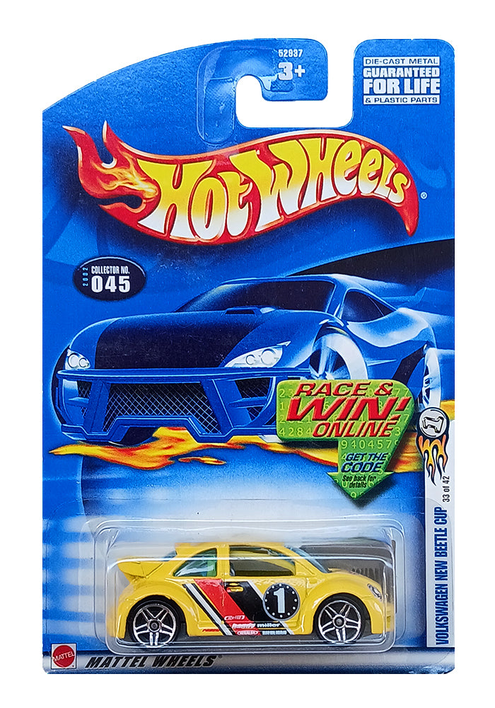 EXCLUSIVES Hot Wheels VW New Beetle Cup - Yellow- 2001 Card (With Protector Case)