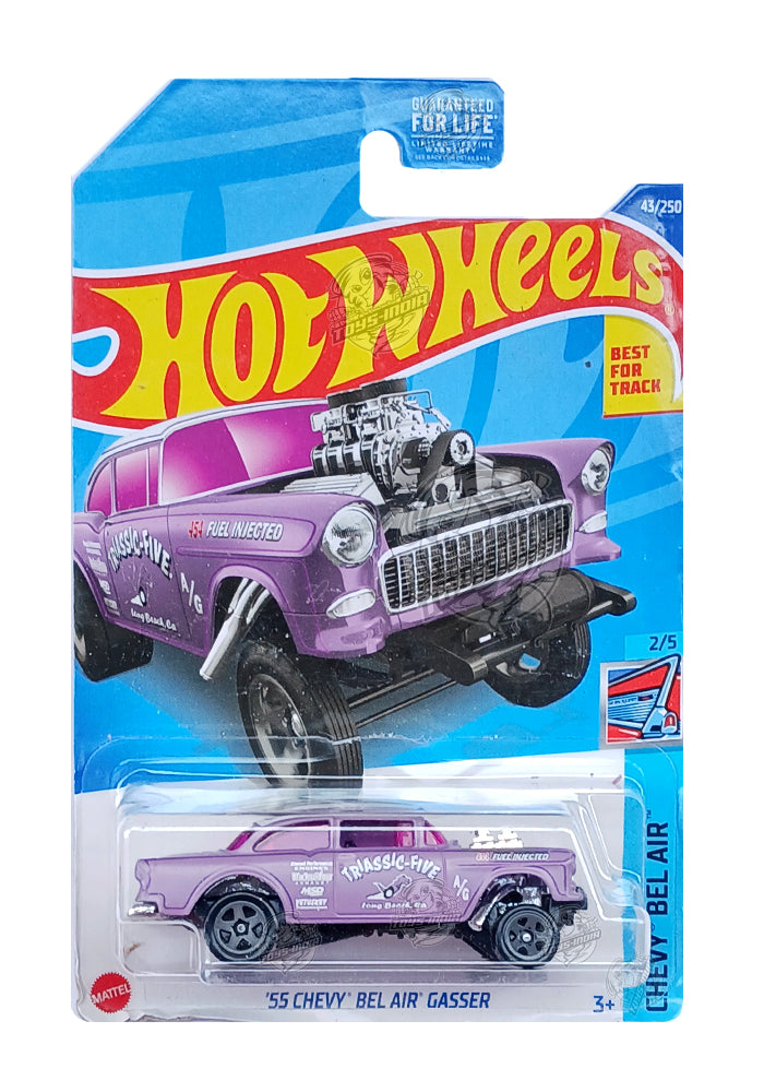EXCLUSIVES Hot Wheels '55 Chevy Bel Air Gasser - Purple - 2021 Card (Creased Card / Car in Excellent Condition) (With Protector Case)
