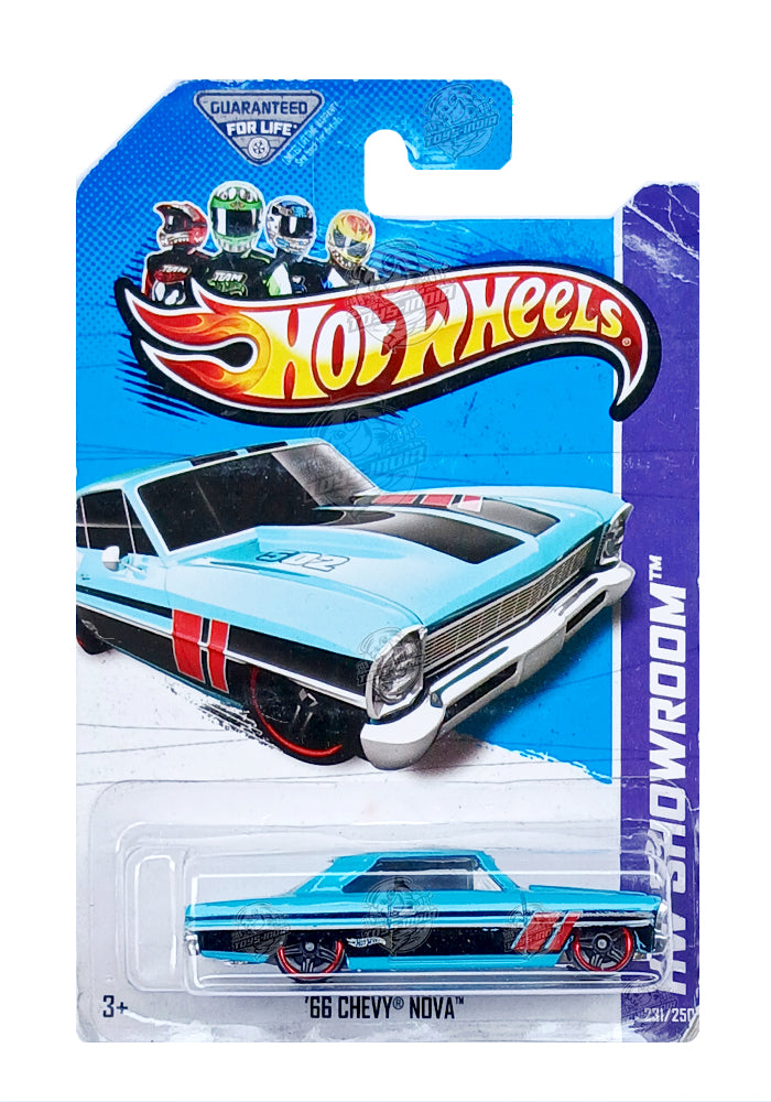 EXCLUSIVES Hot Wheels '66 Chevy Nova - Blue / Black - 2012 Card (Creased Card / Car in Excellent Condition) (With Protector Case)