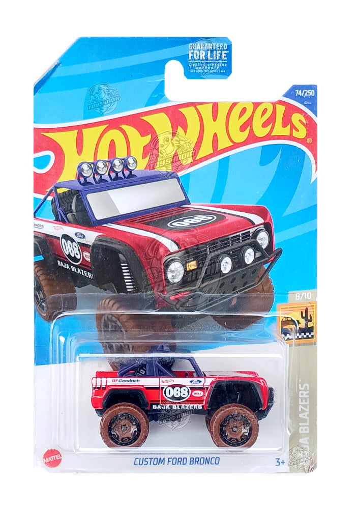 EXCLUSIVES Hot Wheels Custom Ford Bronco - Red - 2021 Card (Blister Damage / Car in Excellent Condition) (With Protector Case)