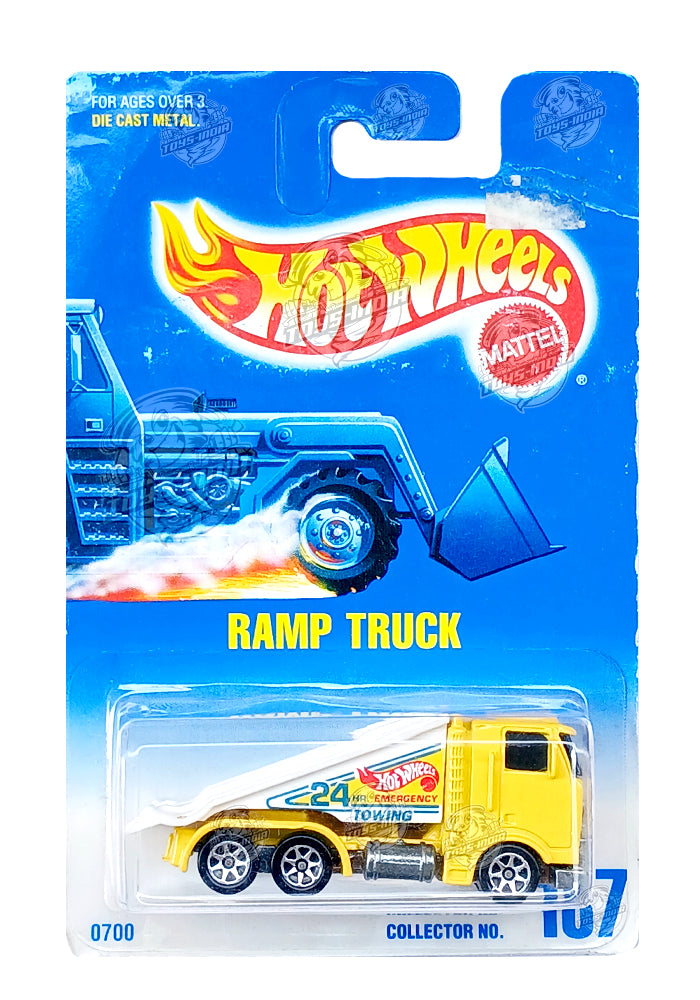 EXCLUSIVES Hot Wheels Ramp Truck - Yellow / White - 1991 Card (Creased Card) (With Protector Case)