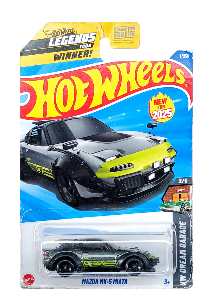 EXCLUSIVES Hot Wheels Legends Tour Mazda MX-5 Miata - Grey / Green - 2024 Card (With Protector Case)