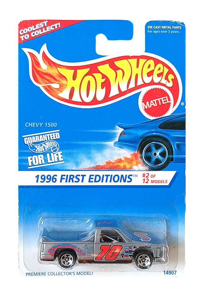 EXCLUSIVES Hot Wheels 1996 First Editions Chevy 1500 - Grey / Red - 1995 Card (With Protector Case)
