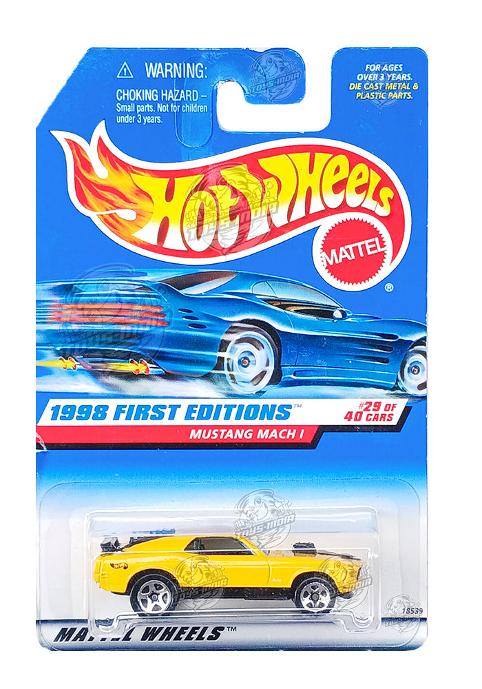 EXCLUSIVES Hot Wheels 1998 First Editions Mustang Mach I - Yellow / Black - 1997 Card (With Protector Case)