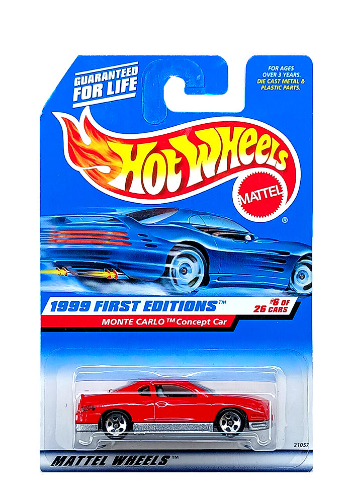 EXCLUSIVES Hot Wheels 1999 First Editions Monte Carlo Concept Car - Red / Silver - 1998 Card (With Protector Case)