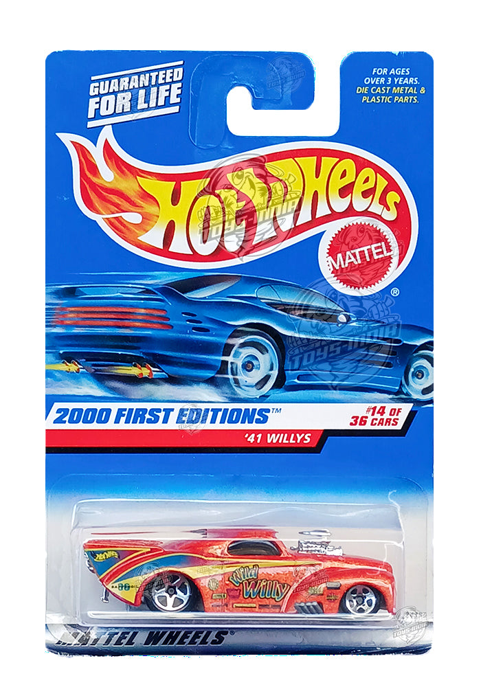 EXCLUSIVES Hot Wheels 2000 First Editions '41 Willys - Orange / Yellow - 1999 Card (With Protector Case)