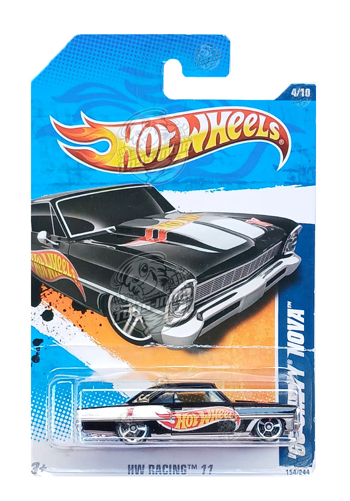 EXCLUSIVES Hot Wheels '66 Chevy Nova - Black / Silver - 2010 Card (Creased Card / Car in Excellent Condition) (With Protector Case)