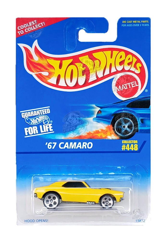 EXCLUSIVES Hot Wheels '67 Camaro - Yellow - 1995 Card (With Protector Case)