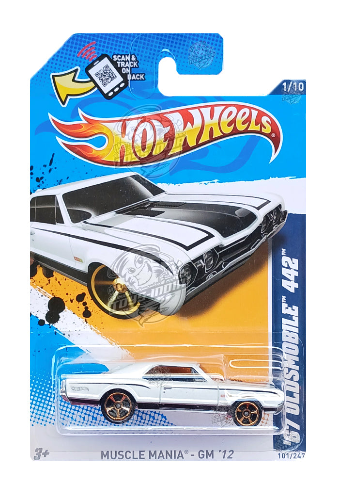 EXCLUSIVES Hot Wheels '67 Oldsmobile 442 - White / Black - 2011 Card (With Protector Case)