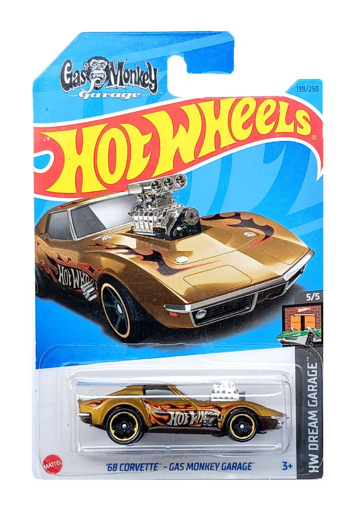 EXCLUSIVES Hot Wheels '68 Corvette - Gas Garage Monkey - Brown - 2021 Card (Blister Damage / Car in Excellent Condition) (With Protector Case)