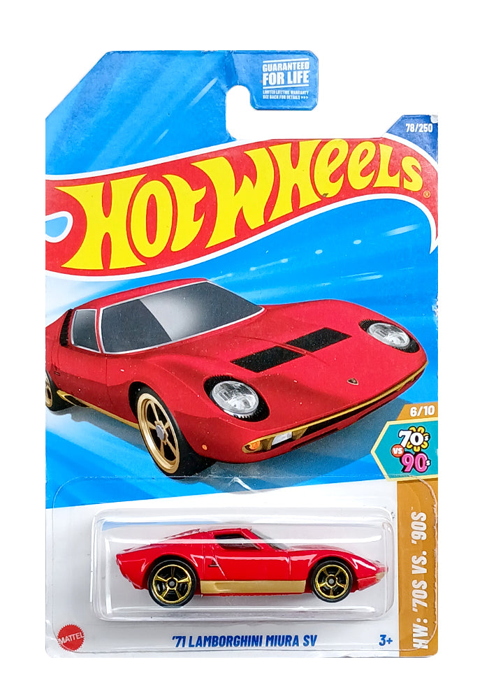 EXCLUSIVES Hot Wheels '71 Lamborghini Miura SV- Red - 2024 Card (Creased Card / Car in Excellent Condition) (With Protector Case)