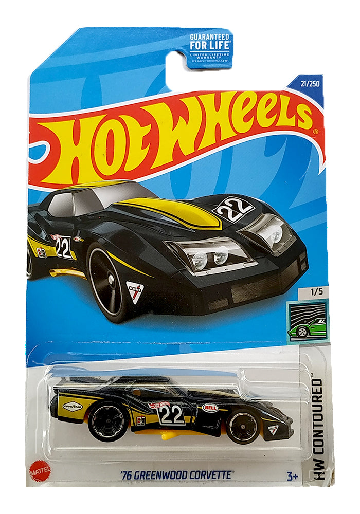 EXCLUSIVES Hot Wheels '76 Greenwood Corvette - Black / Yellow - 2021 Card (With Protector Case)