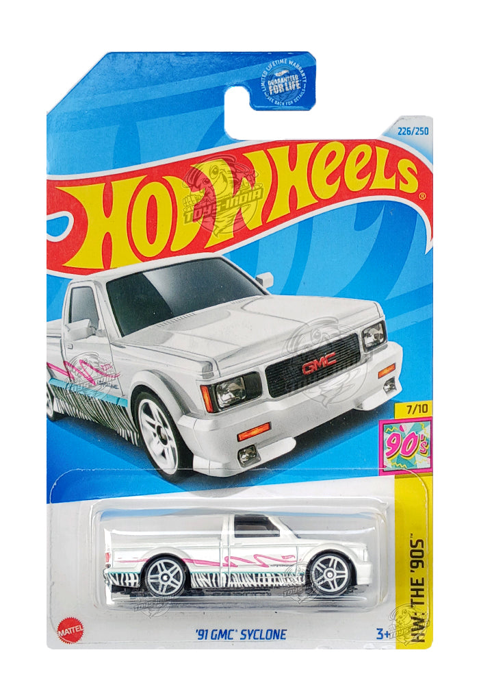 EXCLUSIVES Hot Wheels '91 GMC Syclone - White / Red - 2021 Card (With Protector Case)