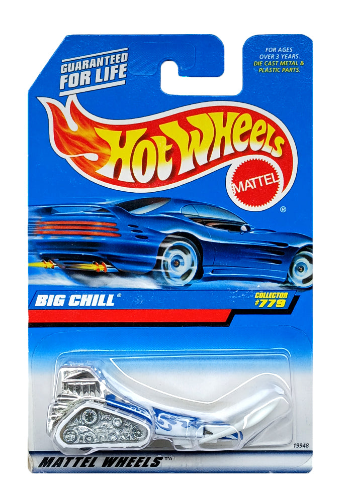 EXCLUSIVES Hot Wheels Big Chill - White / Blue - 1997 Card (With Protector Case)